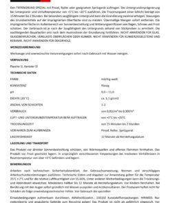 Den TIEFENGRUND SPEZIAL mit Pinsel, Roller oder geeignetem Spritzgerät auftragen. Die Untergrundimprägnierung bei Untergrund- und Umlufttemperatur von +5°C bis +25°C ausführen. Die Trocknungszeit einer Schicht beträgt von 15 Minuten bis 2 Stunden. Bei besonders saugfähigem Untergrund kann die Grundierung zweimal erfolgen. Stauungen des Grundiermittels auf der imprägnierten Oberfläche sind zu meiden. Übermäßige Mengen sofort entfernen. Die imprägnierte Fläche im Außenbereich vor Sonnenbestrahlung und Witterungseinflüssen wie Regen, Schnee und Frost schützen. Der Verbrauch ist je nach der Saugfähigkeit des Untergrunds anhand von Stichproben zu ermitteln. Die nachfolgenden Bauarbeiten erst nach dem Austrocknen der Grundierung fortführen. NICHT ANWENDEN FÜR GLAS, GLASOBERFLÄCHEN, VERGLASTE OBERFLÄCHEN ODER KLINKER. NICHT ANWENDEN FÜR KLINKERZIEGELSTEINE UND KERAMIK. NICHT ANWENDEN FÜR DEKORHOLZ.
