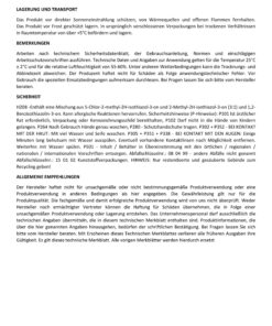 Der Hersteller haftet nicht für unsachgemäße oder nicht bestimmungsgemäße Produktverwendung oder eine Produktverwendung in anderen Bedingungen als hier angegeben. Die Gewährleistung gilt nur für die Produktqualität. Die fachgemäße und damit erfolgreiche Produktverwendung wird von uns nicht überprüft. Weder Hersteller noch ermächtigter Vertreter können die Haftung für Schäden übernehmen, die in Folge einer unsachgemäßen Produktverwendung oder Lagerung entstehen. Das Unternehmenspersonal darf ausschließlich die technischen Angaben übermitteln, die in diesem technischen Merkblatt enthalten sind. Produktinformationen, die über die hier genannten Angaben hinausgehen, bedürfen der schriftlichen Bestätigung. Bei Fragen lassen Sie sich bitte vom Hersteller beraten. Mit Erscheinen dieses Technischen Merkblattes verlieren alle früheren Ausgaben ihre Gültigkeit. Es gilt dieses technische Merkblatt. Alle vorigen Merkblätter werden hierdurch ersetzt.
