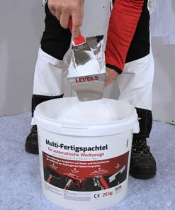 MULTI – FERTIGSPACHTEL zeichnet sich durch eine außergewöhnliche Plastizität und Haftfestigkeit aus. Polymerharz als Komponente sorgt für eine hervorragende Haftung am Untergrund und verbessert seine Festigkeit. Sie hat mikrosetzende Eigenschaften, ideal für die manuelle und maschinelle Verarbeitung. FERTIGSPACHTEL ist eine hochqualitative, gebrauchsfertige, perfekt weiße Masse auf Basis von Acryldispersion und hochwertigen, mineralischen feinkörnigen Füllstoffen. Ideal sowohl für die Verwendung mit automatischen Trockenbauwerkzeugen wie Taper, Flat Box als auch für die manuelle Verarbeitung mit Flächenspachtel, Roller oder mit Spritzgerät. Die fertiggestellte Schicht ist atmungsaktiv und wasserdampfdurchlässig. Nach dem Trocknen lässt es sich leicht schleifen und behält dabei sehr gute Festigkeitswerte.