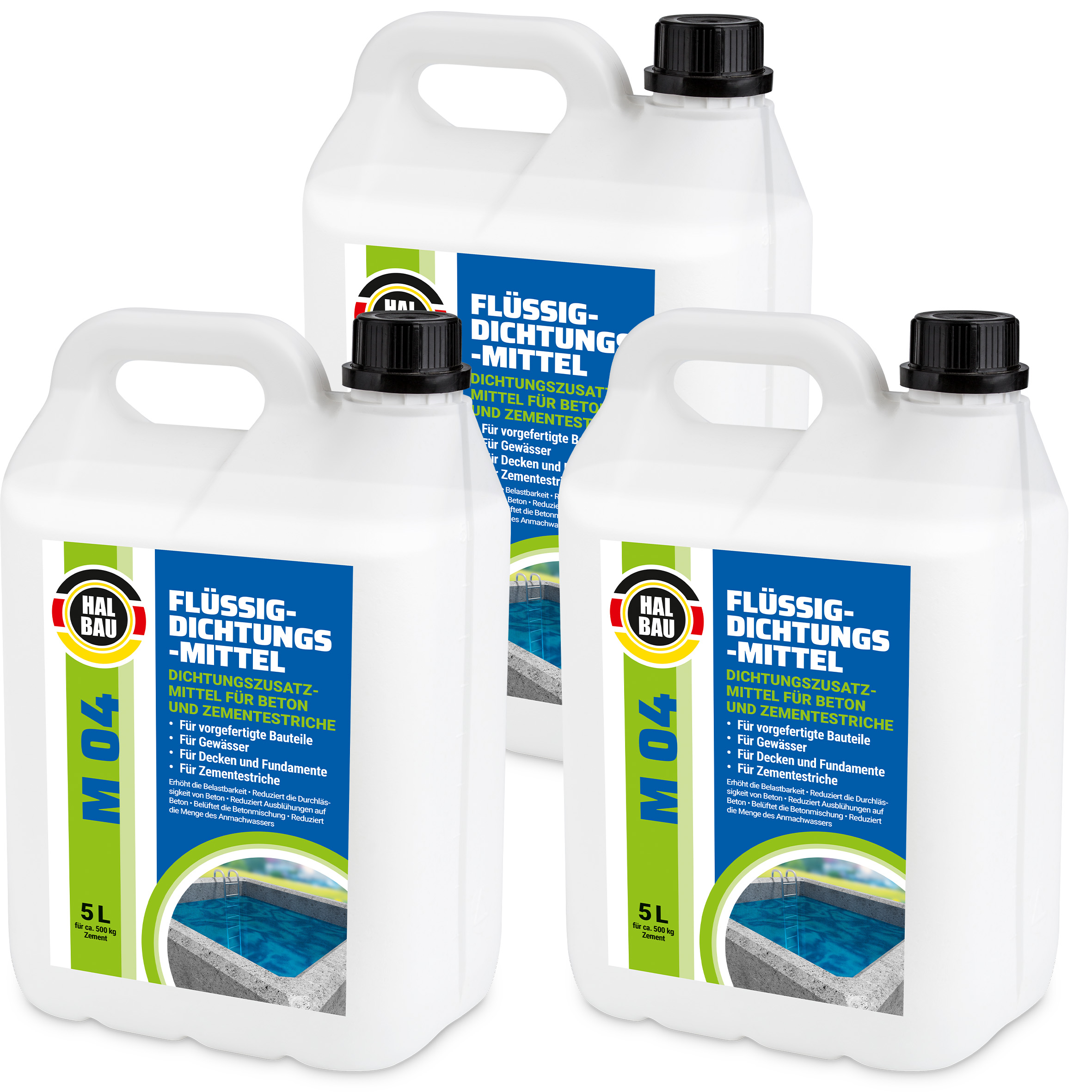 HALBAU Flüssig Dichtungsmittel M04 ist ein modernes Dichtungsmittel für alle Betonarten mit verbessertem Wasser- und Frostwiderstand und für Zementestriche. Mit dem Zusatzmittel lassen sich hervorragende physikalische und chemische Parameter des Betons erzielen. Es reduziert die Durchlässigkeit von Beton um 100 % und erhöht gleichzeitig seine Festigkeit auf 15 %. Es reduziert das Anmachwasser und belüftet die Betonmischung. Der mit dem Zusatzmittel hergestellte Beton kann einem Wasserdruck von bis zu 8 Atmosphären standhalten. M04 reduziert außerdem die Bildung von Karbonatausblühungen, verhindert Korrosion und kann mit allen Zementarten und mit jedem Zuschlagstoff verwendet werden.