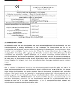 Der Hersteller haftet nicht für unsachgemäße oder nicht bestimmungsgemäße Produktverwendung oder eine Produktverwendung in anderen Bedingungen als hier angegeben. Die Gewährleistung gilt nur für die Produktqualität. Die fachgemäße und somit erfolgreiche Produktverwendung wird von uns nicht überprüft. Weder Hersteller noch ermächtigter Vertreter können die Haftung für Schäden übernehmen, die in Folge einer unsachgemäßen Verwendung oder Lagerung des Produktes entstehen. Das Unternehmenspersonal darf ausschließlich die technischen Angaben übermitteln, die in diesem technischen Merkblatt enthalten sind. Produktinformationen, die über die hier genannten Angaben hinausgehen, bedürfen der schriftlichen Bestätigung. Mit Erscheinen dieses Technischen Merkblattes verlieren alle früheren Ausgaben ihre Gültigkeit.