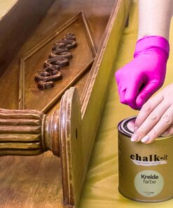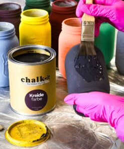 Chalk-it ist eine hochwertige Farbe, die für die Gestaltung und Restaurierung von Möbeln entwickelt wurde. Er zeichnet sich durch eine matte Oberfläche, gute Haftung auf dem Untergrund und schnelle Trocknung aus. Sie bietet unbegrenzte dekorative Möglichkeiten, von einer glatten Oberfläche bis hin zu Shabby Chic. Mit Chalk-it Kreidefarbe wird die Verwandlung Ihres Lieblingsmöbels sehr einfach und wenig arbeitsaufwändig. Chalk-it ist geeignet für: Holz, PVC, MDF, Metall, Glas, Stein, Ziegel und viele andere Oberfläche.Chalk-it enthält die hochwertigsten Pigmente und bis zu 45 % Kreide. Dadurch erhält es eine perfekte Deckkraft und ein ultramattes Finish. Wenn Sie Chalk-it Wachs auf den Farbanstrich auftragen, erhalten Sie eine samtige, leicht glänzende Oberfläche, die zudem gut geschützt ist. Chalk-it ist in einer breiten Palette von Farben erhältlich, die weiter aufgehellt (durch Zugabe von Purewhite oder abgedunkelt (durch Zugabe von Graphite) werden können, und die man miteinander mischen kann, um seine eigene einzigartige Farbe zu kreieren.Chalk-it ist ein Produkt auf Wasserbasis und enthält nur die hochwertigsten Rohstoffe, ist fast geruchlos und hat einen sehr niedrigen VOC-Gehalt (flüchtige organische Verbindungen). Erfüllt EN71-3: kann sicher auf Kindermöbeln und Spielzeug verwendet werden. Hypoallergen – bestätigt durch ein Zertifikat des Prüflabors für Kosmetik und Haushaltschemie