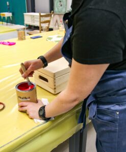 Arbeiten bei einer Temperatur von 10-30 °C führen. Vor dem Gebrauch die Farbe gründlich mischen. Mit einem Pinsel oder einer Rolle auftragen. Verteilen Sie das Produkt entlang der Holzmaserung. Den zweiten Anstrich etwa 2 Stunden nach dem ersten Anstrich auftragen. Nach dem Trocknen eine Schicht Chalk-it-Lack oder Chalk-it-Wachs auftragen.