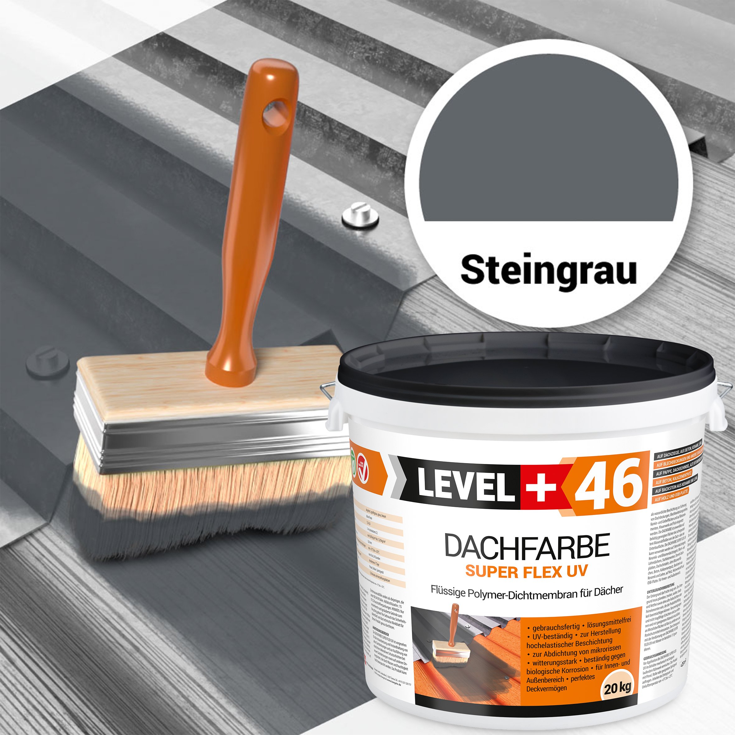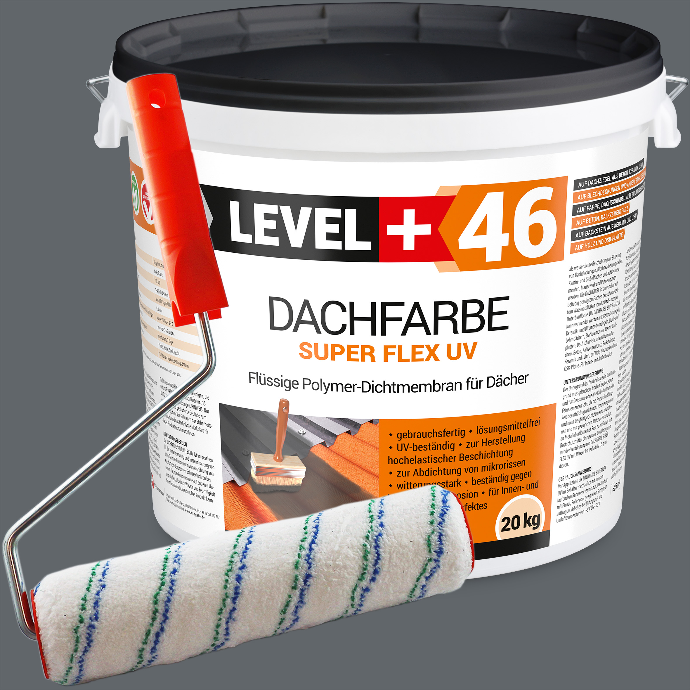 LEVEL+ DACHFARBE SUPER FLEX UV L+46 20KG + STREICHROLLER 25cm
