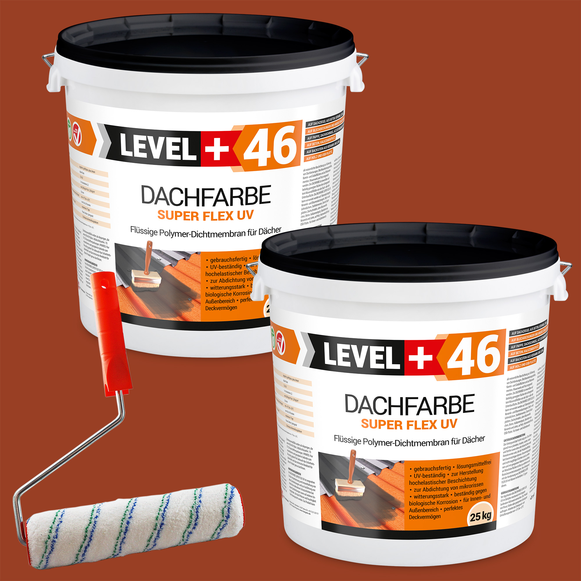 LEVEL+ DACHFARBE SUPER FLEX UV L+46 50KG + STREICHROLLER 25cm