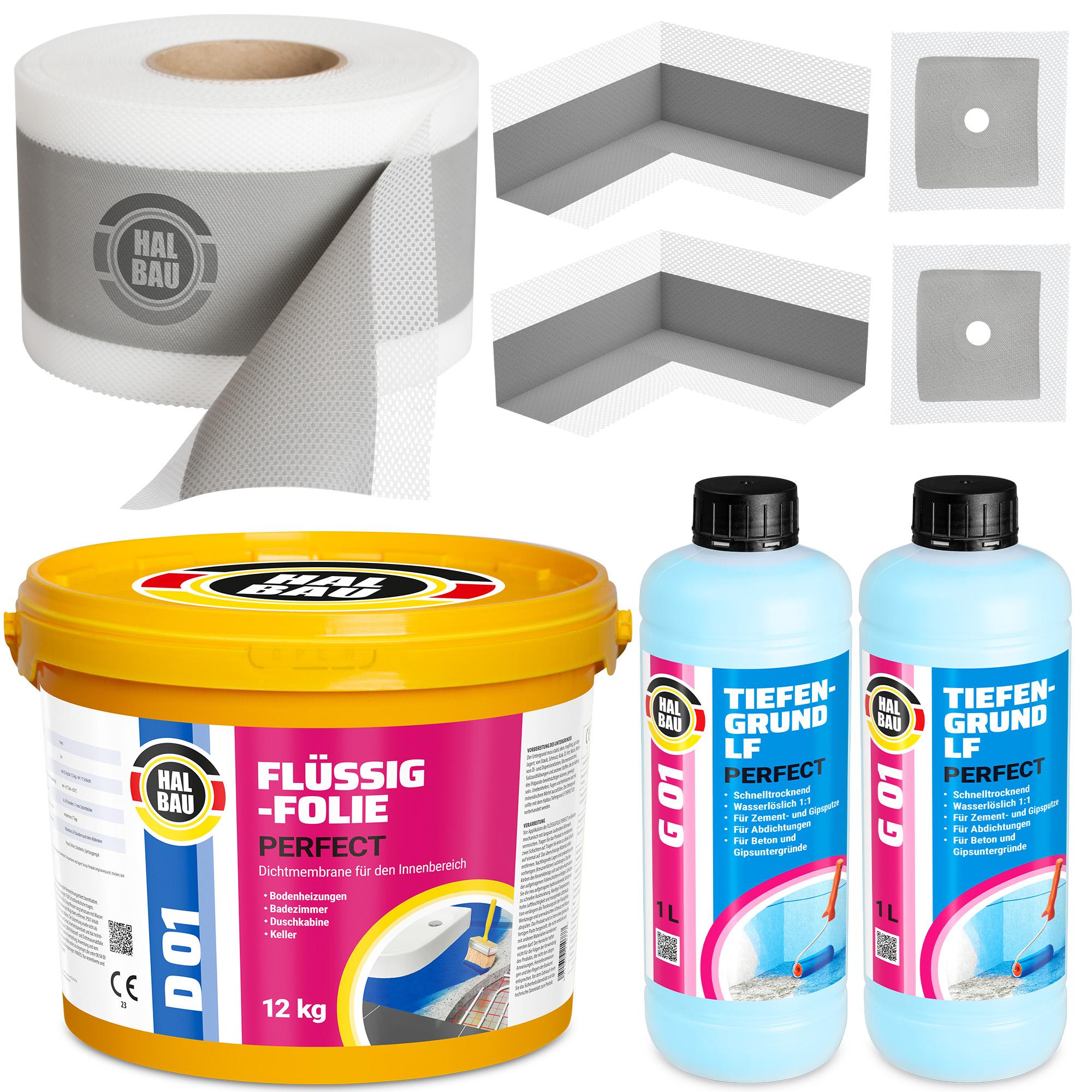 Dichtset Flüssigfolie 12kg Dichtband 10m Dichtecken Manschetten Tiefengrund SET H29