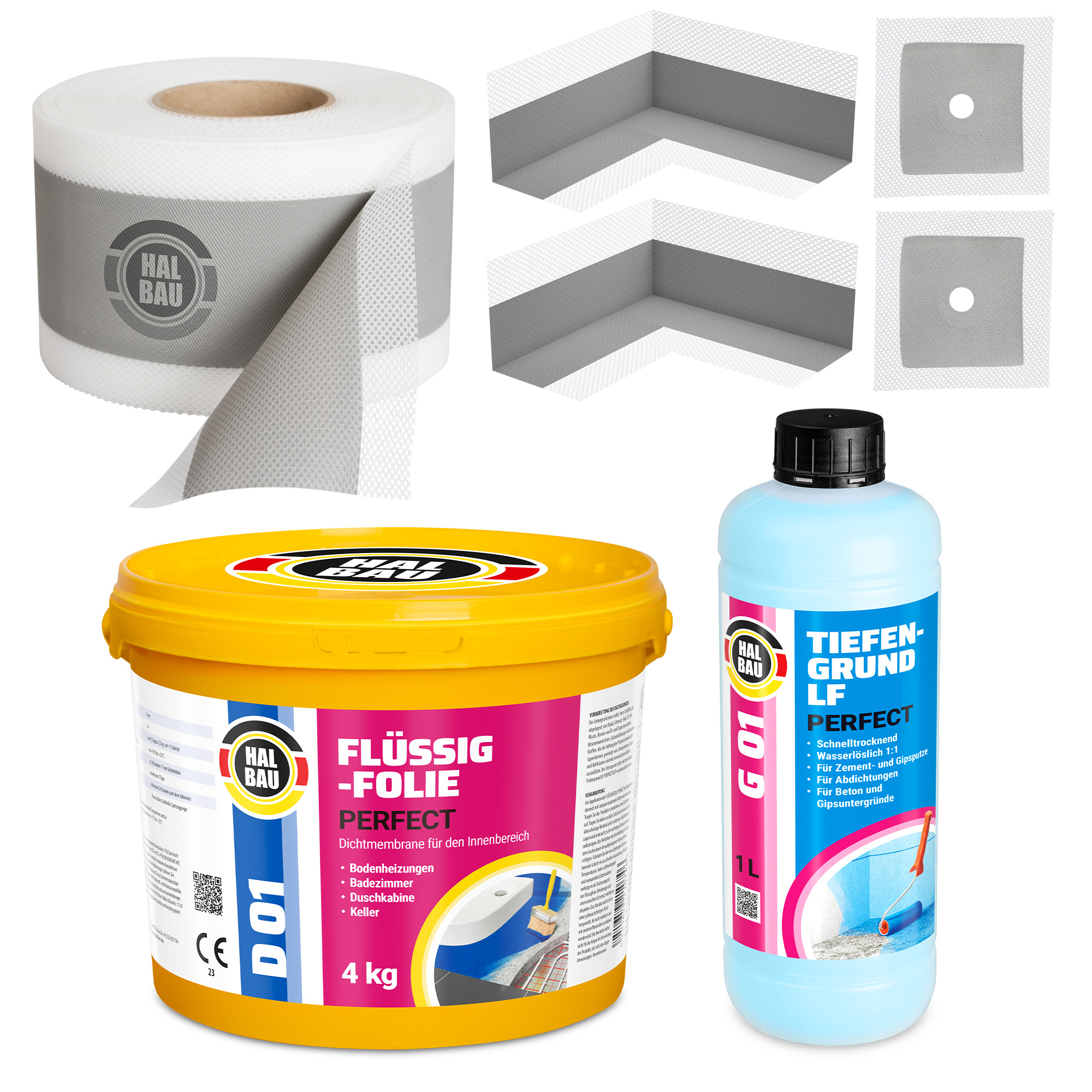 Die Ecken sind vorgesehen für die Abdichtung von allen Innenecken zwischen Wand und Fußboden sowie für Dichtsysteme in Außenecken unter Fliesen. Für innen und außen, zur Anwendung in Räumen, die vorübergehend oder ständig durch Wasser und Feuchtigkeit beansprucht sind. Die Dichtecken eignen sich für Schwimmbäder, Saunas, Springbrunnen sowie für Balkon- und Terassenabdichtungen. Das Produkt ist vorgesehen für Badezimmer, Toiletten, Duschen, Küchen, Wasch- und Kellerräume. Es ist verträglich mit allen flüssigen Polymer- und Polymerzement-Dichtmassen der Marke HALBAU. Das Produkt ist nicht für Bauteilfugen bestimmt.
