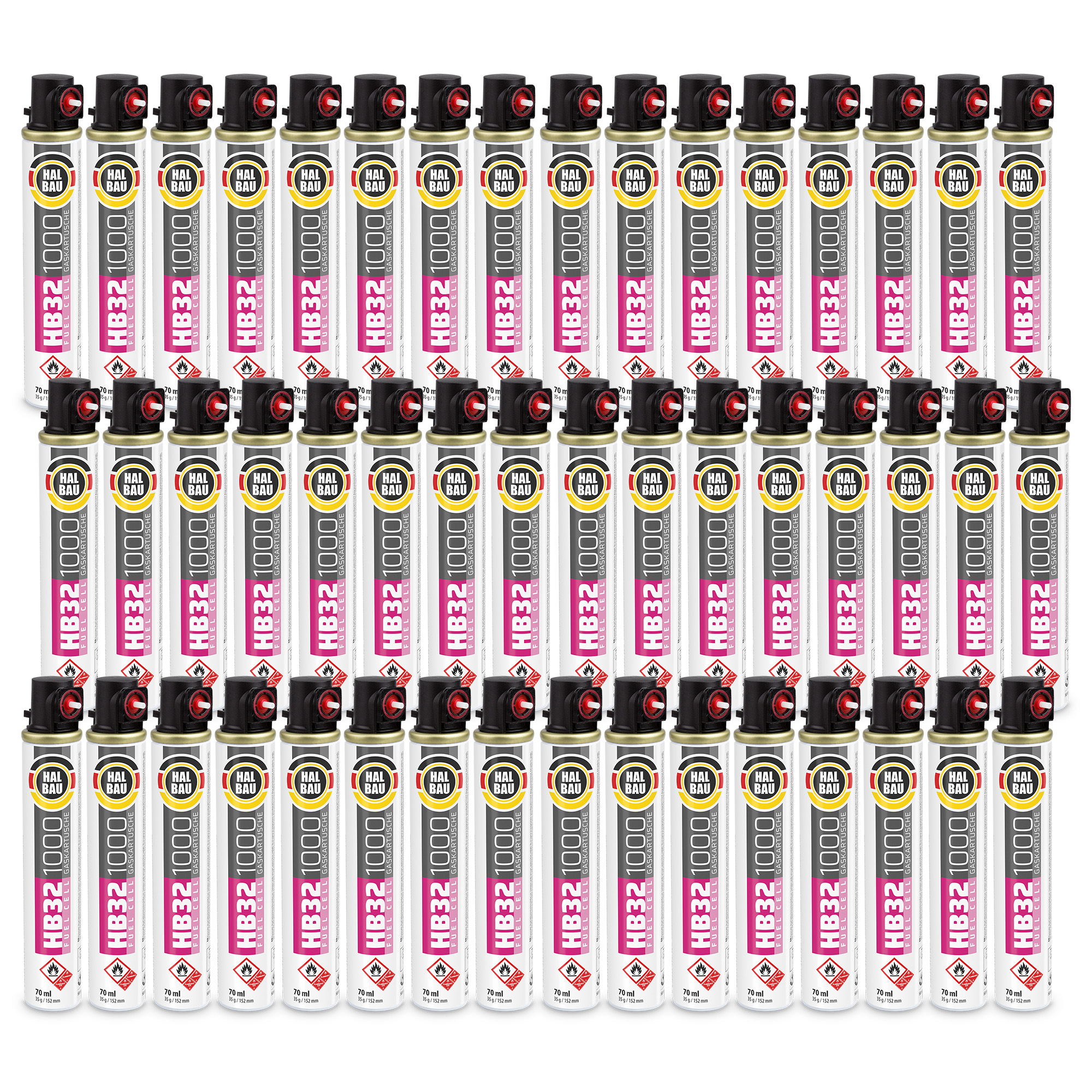 HALBAU Gaskartusche für gasbetriebene Setzgeräte Ersatzgas 152mm/74ml HB32 – 48 Stk.