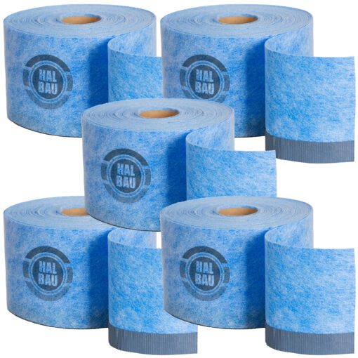 Das Wannendichtband HN05 ist ein spezielles Trilaminat-Dichtband in blauer Farbe mit hochwertigem, quer elastischen Polypropylen-Vlies und hochqualitativem Dichtgewebe aus thermolastischem Elastomer 100%. Das spezielle Polyester-Vlies mit erhöhtem Stückgewicht beidseitig des Elastomer-Kerns sorgt für den optimalen Verbund zwischen der Dichtbahn und allen flüssigen Polymer- und Polymerzement-Dichtmassen von HALBAU. Das Wannendichtband HN05 ist einseitig mit Butylklebstreifen versehen, wodurch anwendungstechnische Fehler wegfallen können, das Einlegen fällt noch leichter, die Abdichtung und der Verbund sind noch präziser. Das eingesetzte hochwertige Elastomer ist UV-beständig, alterungsbeständig, dauerhaft elastisch und thermoplastisch.